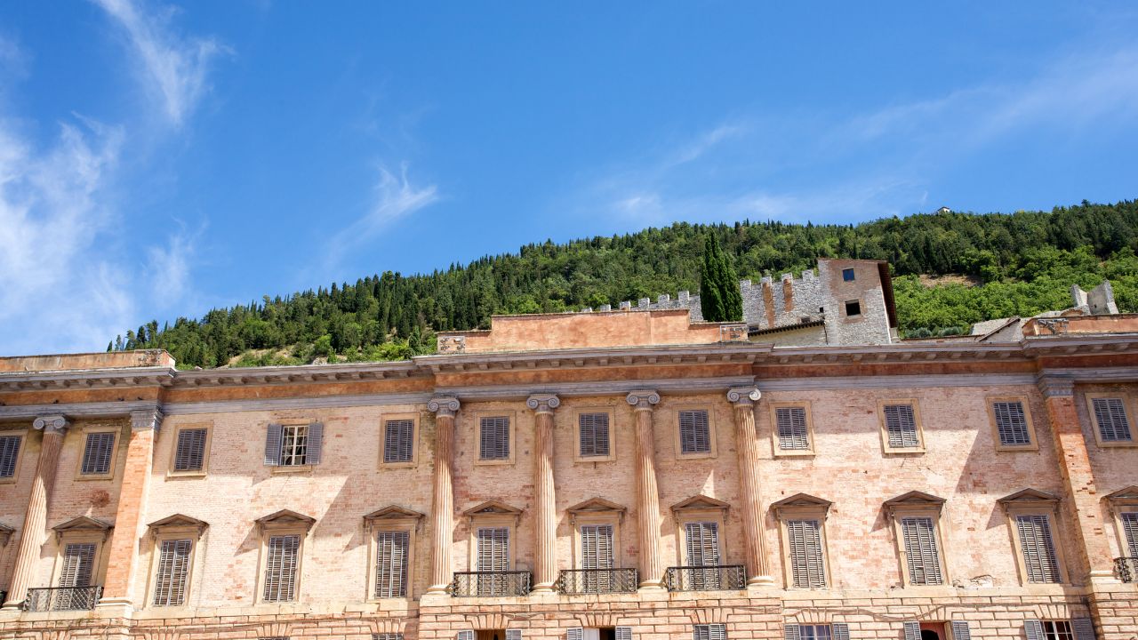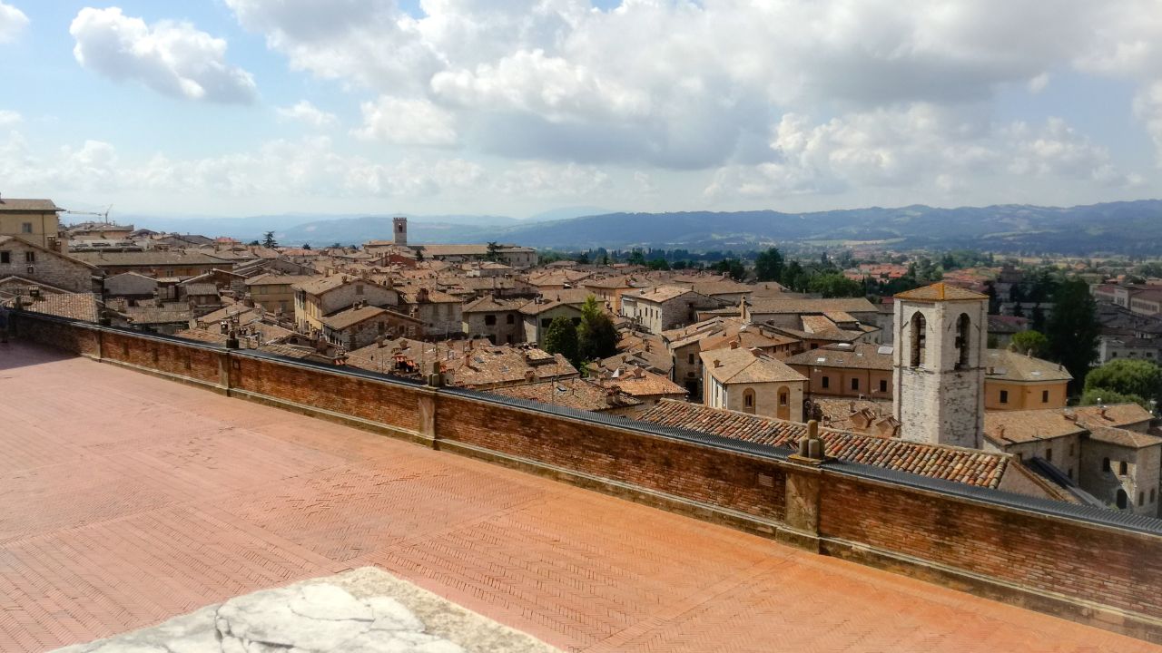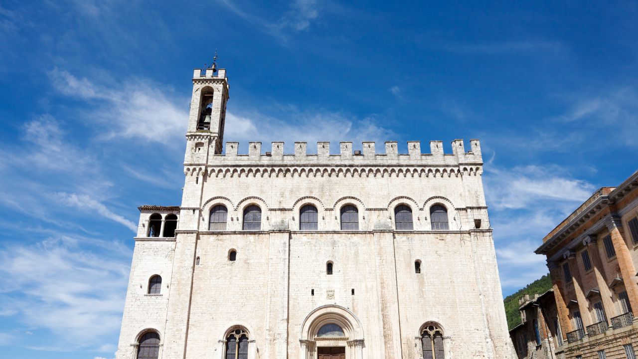 La piazza è dominata dal maestoso Palazzo dei Consoli, simbolo del potere civico della città nel Medioevo. Da qui lo sguardo si apre su un panorama che abbraccia i tetti di pietra e le colline umbre.